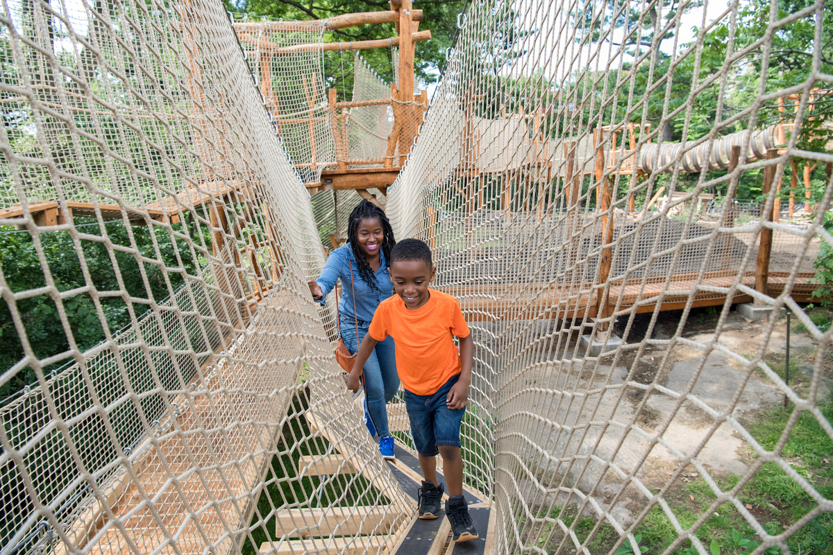 Visitors ages 3 & up can get a bird’s eye view of the park at Nature Trek! Navigate across bridges and over balancing beams. Weave between obstacles for a safe and challenging adventure.